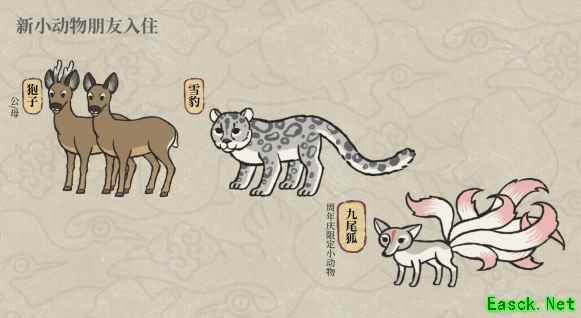 【雕栏画栋,珍禽异兽】 漕运商会、严大人、惧留孙和金吒分别上新了多款全新建筑和装饰,琳琅满目。全新的小动物朋友「雪豹」、「狍子」即将入住,江南小镇变得越发热闹。 还有来自山海世界的小动物「九尾狐」也将在三周年庆典期间现身江南,敬请期待哟~