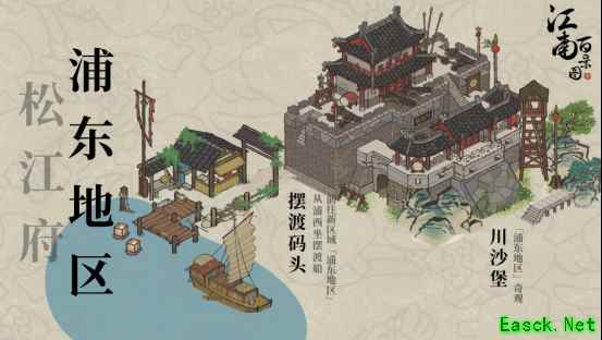 海落田沃从此居,《江南百景图》2.2.1新版本已正式上线啦! 本次新版本中【松江府】迎来了扩建,新增了「浦东地区」,【绍兴府】探险剧情「望海潮」开启首篇,除此之外还有多款建筑、装饰和家具上新。 沧海桑田,熬波煮盐 【松江府】新增「浦东地区」,修建摆渡码头「百川码头」及「归海码头」后,居民可从「浦西地区」前往「浦东地区」。 除了奇观「川沙堡」,还有多个新装饰及建筑,可建造于松江府城内,平添水乡风韵。另外还有全新特色玩法将随版本更新,静待知府大人进入游戏内体验。