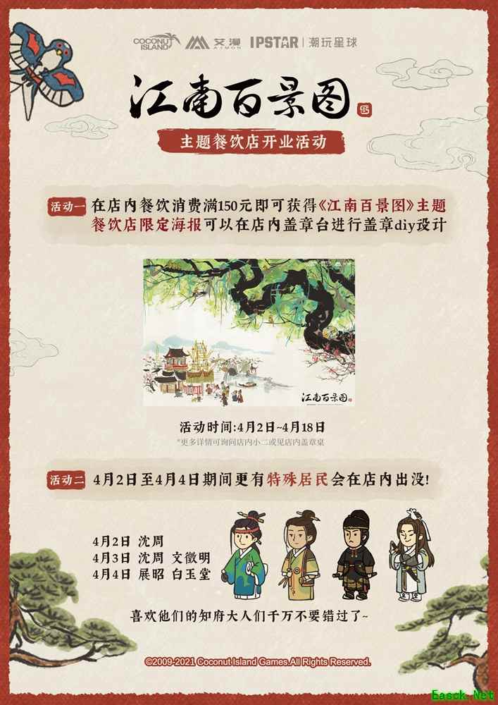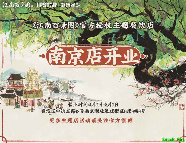 4月2日起,江南百景图 X IPSTAR潮玩星球 主题餐饮店正式开业! 首家店坐标南京,现场超多趣味活动、精美餐饮等候知府大人们光临!
