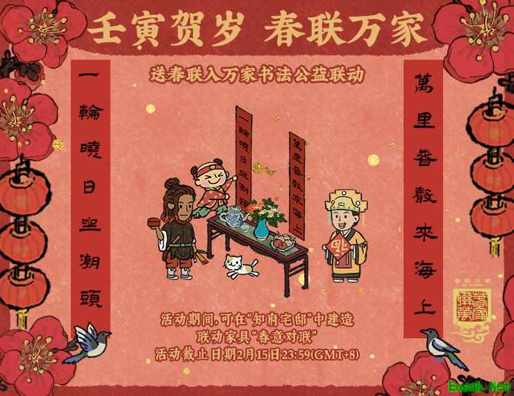 1月24日起,古镇模拟经营手游《江南百景图》 宣布即将携手@上海春联万家活动官方微博 —— 上海市书法家协会、上海楹联学会、上海渊雷文化艺术基金会 联合开展【送春联入万家】书法公益联动! 春联,是中国特有的文学形式与传统习俗。每逢新春佳节,家家户户门前都会挂起春联,人们将对美好生活的期许寄托在一幅幅对仗工整的词句之间,以盼来年风调雨顺、迎祥纳福。