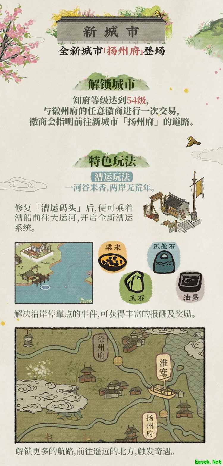 1月20日起,古镇模拟经营类手游《江南百景图》正式迎接新城市扬州府!新玩法、新人物、新奇观尽在1.7.0全新版本。