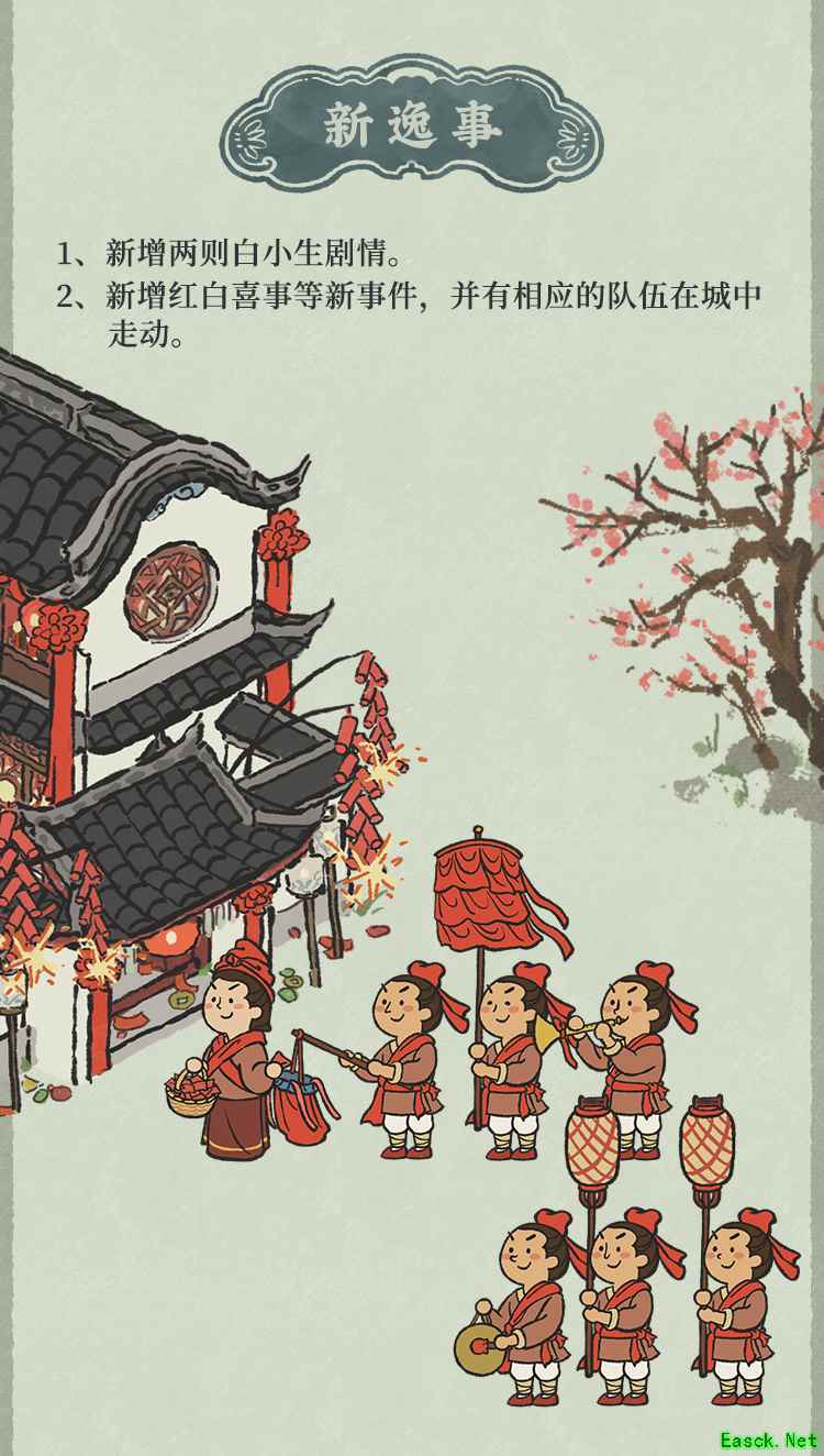 同期还将更新两则白小生剧情,新增红白喜事出现时会有相应队伍在城中走动的情节,助力玩家更为了解小镇见闻,感受市井之间的烟火气息。