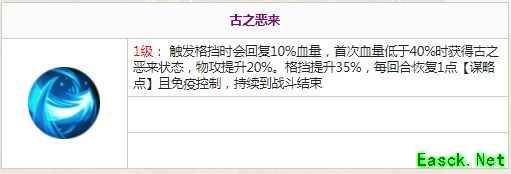格挡回血效果让典韦在前期可以专注于堆叠格挡属性,无论是装备、宝物还是坐骑,都可以选择加成格挡的选项。在游戏初期,玩家普遍侧重输出,命中属性相对较低,这时典韦凭借高格挡率触发回血效果,表现尤为强势,即使处于逆风局面也有翻盘可能。即便被控制如眩晕或混乱,只要格挡生效,依然能够恢复生命。 当典韦的生命首次降至40%以下时,除提升攻击与格挡外,还会获得免疫控制效果,并在每回合恢复1点怒气。在手动战斗中,可先让其承受伤害触发古之恶来技能,之后再进行治疗和续航,以充分发挥其战斗作用。 古之恶来