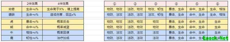 ③文章搭配 玩家达到55级后可解锁新功能,具体可参考下图中各类套装及单独属性的展示。 文章效果表