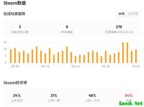 本作的Steam数据表现相当惨淡:写稿时仅有3名玩家在线,昨日在线峰值也仅仅是个位数——仅有9人。另外本作好评率为54%,因为评价数太少直接无法统计最佳评测和简中区评测。 点击进入游民众评查看数据>>