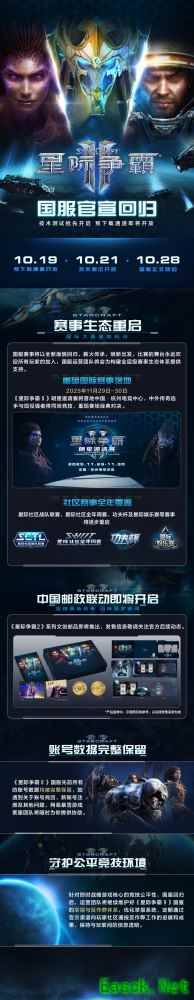 账号数据完整保留 《星际争霸Ⅱ》国服先前所有的账号数据均被完整保留,如遇到关于账号找回、新账号注册及其他问题,网易暴雪游戏客服团队将随时为你提供协助。 守护公平竞技环境 针对即时战略游戏核心的竞技公平性,国服回归后,运营团队将继续维护好《星际争霸Ⅱ》国服的举报与反作弊体系,优化举报系统,定期通过官方渠道向玩家社区通报反作弊工作的进展和成果,保持与玩家间的信息透明。 归期已定,集结号角吹响 星际间的战争即将再度打响,新的传奇等待指挥官们续写,10月21日,国服测试开启;10月28日,国服正式回归。科普卢星区正等待指挥官们再度归来!