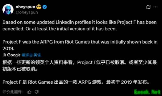 根据博主@oheyspun的消息称,根据一些更新的领英个人资料来看,“Project F”似乎已遭到取消,或者至少其最初版本已被取消了。