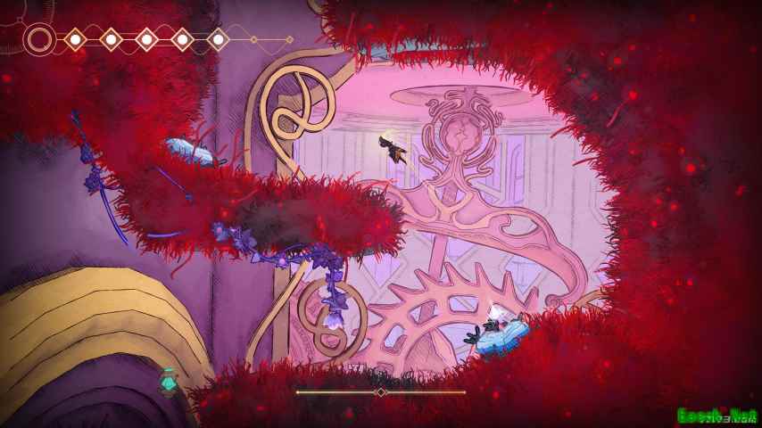 Sarah Hourcade:我们是在上一款游戏《我的阴暗面》(Shady Part of Me)发售后开始构思《秘奥》的。我们都厌倦了为期四年的线性游戏开发工作,而且当时团队里大部分人都在玩《空洞骑士》。我们希望打造一款团队自己也愿意玩上好几年的游戏,充满动作和挑战,并设定在一个隐藏着众多秘密待发掘的科幻环境中。因此,"衰败的科技方舟"就成了一个完美的设定,而且这实际上是项目最初期的主要构想之一。