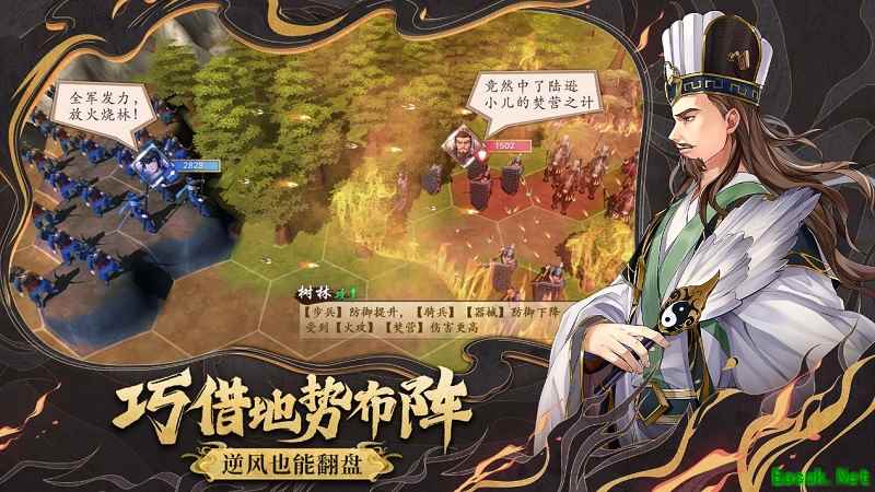 真实地形是《策魂三国》的一大特色,森林、浅滩、木桥、山脉等复杂地形不仅会会影响双方攻防、技能效果、行动路线,同时也会改变双方在战斗时的视野情况,从而影响到对局势的判断。想纵览全局就得登高望远,想出其不意就得绕后偷袭,火烧连营、声东击西等等都是常规操作,每局游戏都是货真价实的一场战役。