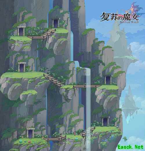 在制作下层的场景时,为了衬托出嘉庇艾尔的风貌,美术为了着重表现云层和风的感觉,从场景内细节着手,所地图上的大部分植被都添加了随风摆动的动画。一些建筑元素上也添加了诸如风车之类的设计。
