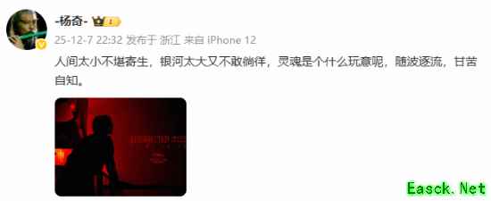 今天晚上,游戏科学联合创始人,《黑神话:悟空》美术总监杨奇在微博发文:“人间太小不堪寄生,银河太大又不敢徜徉,灵魂是个什么玩意呢,随波逐流,甘苦自知。”并附上了一张《狂野时代》的图片,不出意外是在分享观后感。