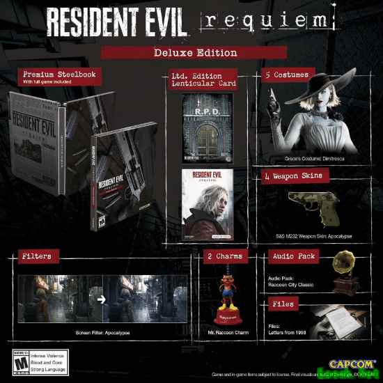 游戏官方此前公布的豪华版内容包括:5套服装、2款滤镜、4款武器外观、2款挂件、音乐及音效:浣熊市经典、文件:来自1998年的信。