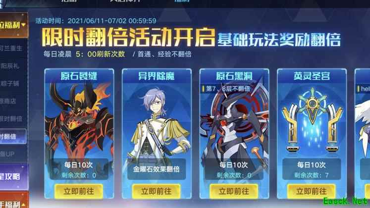 每日扫荡双倍资源即可