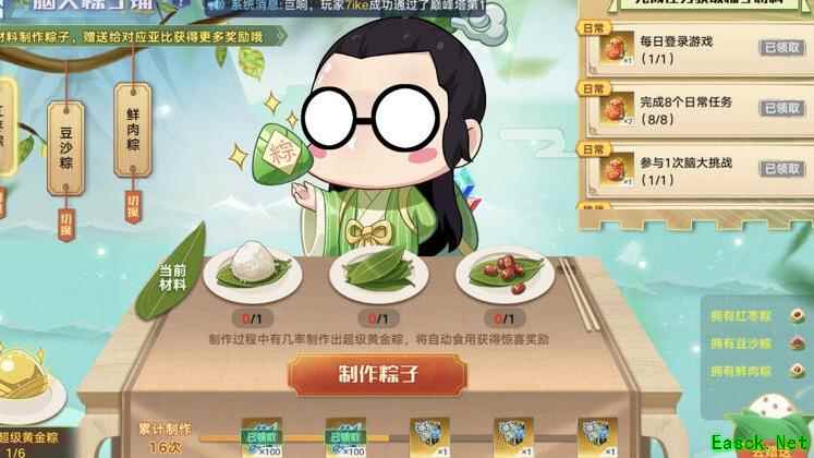 明天完成日常和双倍任务,轻松达成目标,顺带做粽子、喂粽子,今天白拿3晶石,活动真划算。