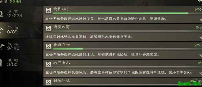 种田类成就侧重内政发展,涵盖城池建造、民生安定、科技提升及商贸往来等方面。