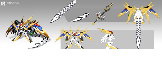 超魔神龙神丸是正传中龙神丸的最终形态,集合了光之狮子、炎之凤凰、黑钢之剑王等七圣神之力进化而来,拥有每一种圣神魔神的能力,堪称最全能的魔神。因此,《魔神英雄传》手游在设计之初就设想如何完美的还原出大家满意的超魔神龙神丸。