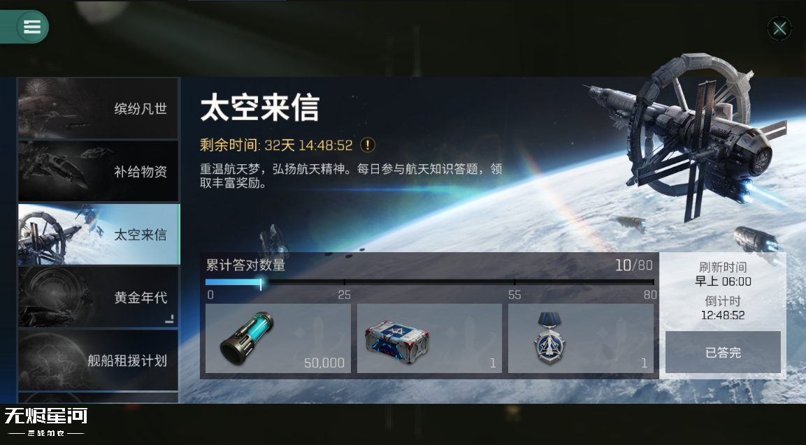 值此辞旧迎新之际,EVE手游推出了“太空来信”的航天知识科普答题活动!带各位航天迷在游戏中实现航天梦,弘扬航天精神,接收来自中国航天的新年祝福和礼物!