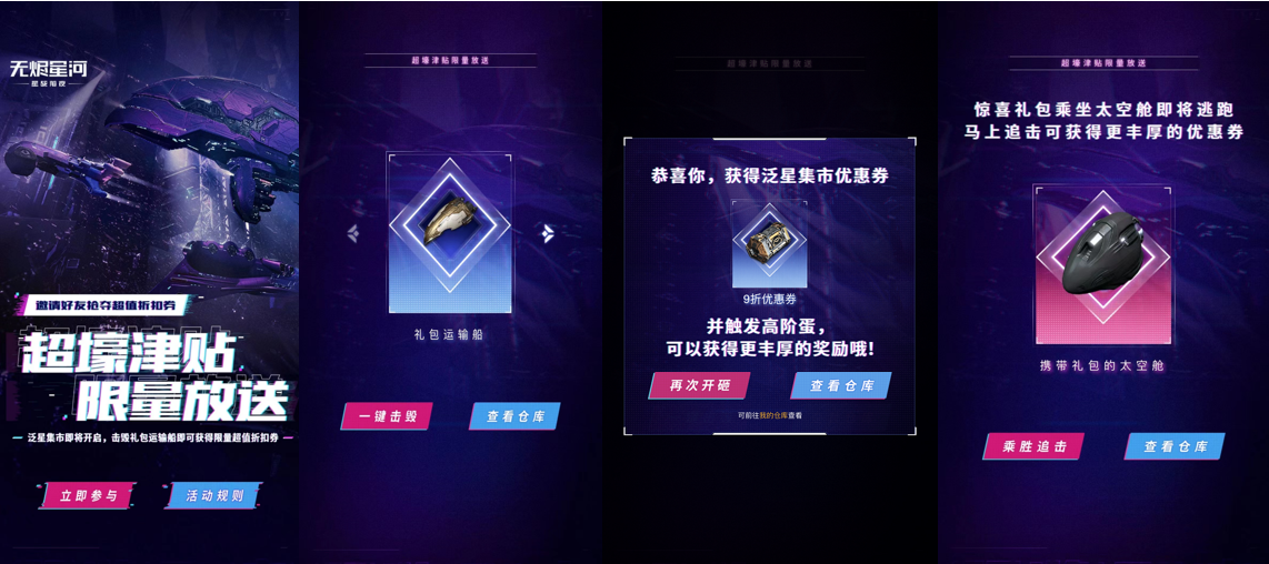获取优惠券后,飞行员们可以在H5页面的“仓库”中查看优惠券码,游戏内的泛星集市活动开启后,折扣券即可在购买商品时使用,帮助飞行员们以超优惠的折扣购入超值好物,武装自己的舰船!
