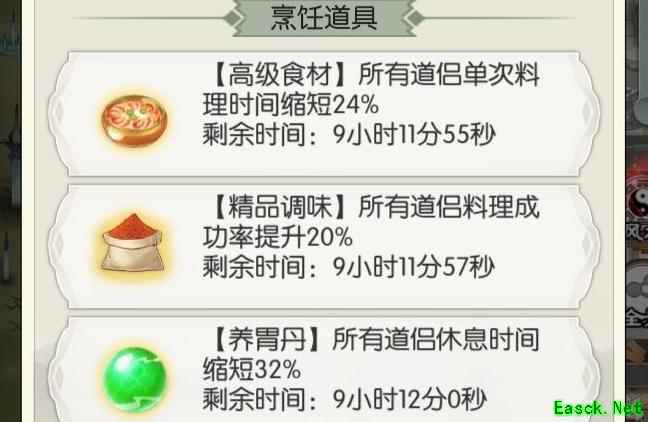 烹饪所得道具中,唯有最后三个葫芦和焦渣实用,其余基本可有可无。