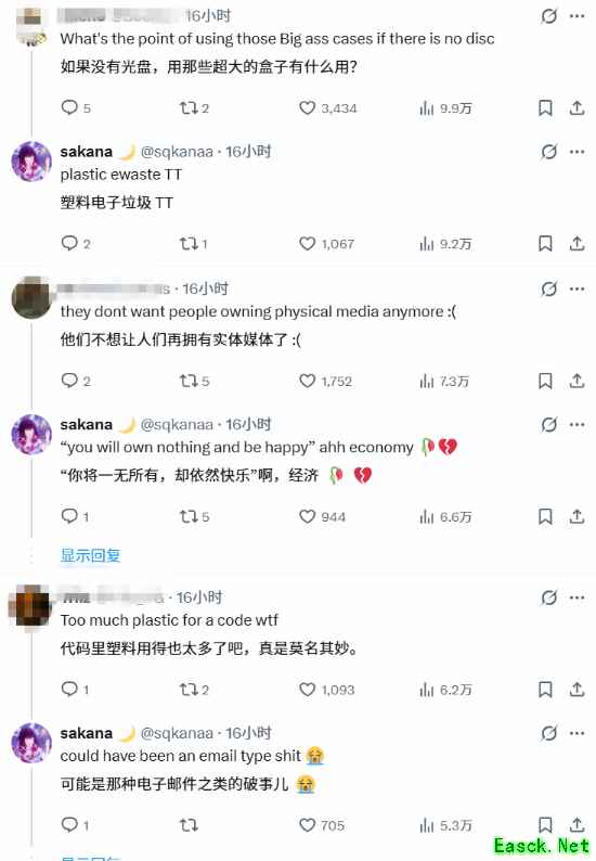 近日,推主@sqkanaa 在社交平台吐槽,如今的PS5实体盘难道就是只是为了花钱买个盒子吗?
