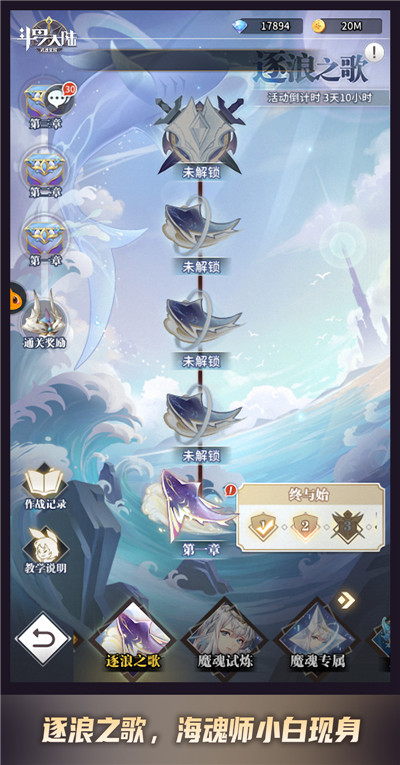 《斗罗大陆:武魂觉醒》逐浪之歌活动,维序者们有机会体验到一段和海魂师小白相遇的奇妙经历。作为海神岛的十万年大白鲨,小白既是海神坐骑,也是守护海神岛的魂兽。
