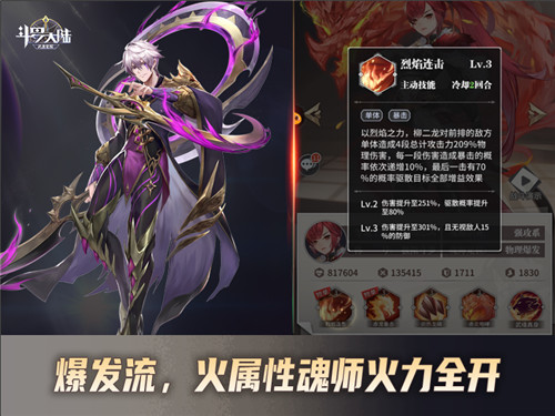最后来简单介绍一下《斗罗大陆:武魂觉醒》中爆发流战斗配置,这个相对来说比较简单,主要是以火属性输出魂师为主,通过火力全开的攻击直接打垮对方。