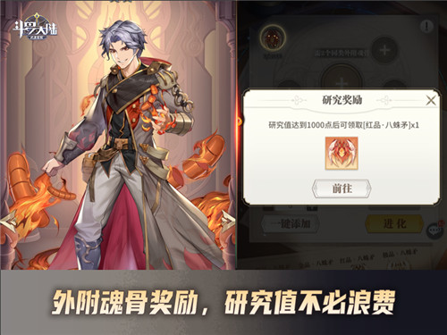 如果失败了也不用担心,这时候就能获取外附魂骨研究值,在研究值到达1000后就可以奖励一个红品的八蛛矛,同时研究值清空。也就是说就算是失败了,到了一定程度也可以获得高等的外附魂骨,也算是一种弥补了。