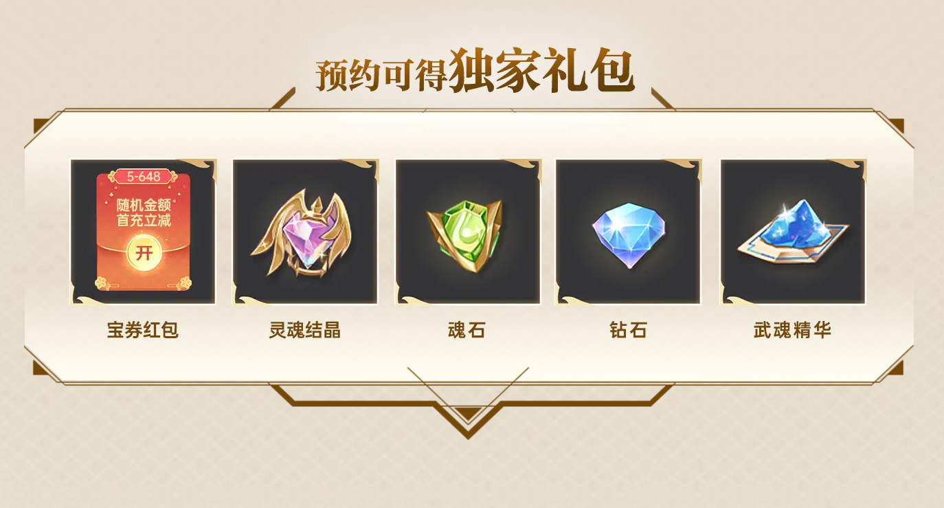 如果忘记预约也不要紧,只要你在腾讯手头助手内首次下载游戏并完成角色注册,就能获得随机金额的充值宝券红包,保底5元轻松拿到游戏内首充礼包的奖励,要是运气爆发抽到648宝券,那就恭喜你可以占据排行榜,让各位萌新魂师都前来膜拜你哦~