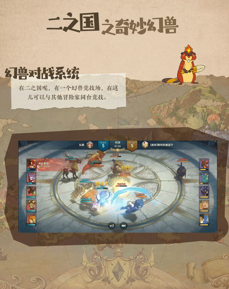 游戏的幻兽系统是其一大亮点。这些幻兽不仅外观各异,性格鲜明,还能在战斗中发挥重要作用。你可以与它们建立深厚的友谊,共同成长,甚至在战斗中召唤它们协助你。这种独特的互动体验,让《二之国:交错世界》在手游市场中独树一帜。