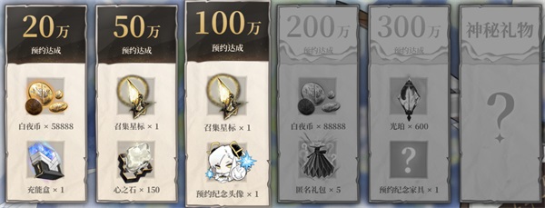 目前,《白夜极光》的全网预约量已突破100w大关。值得注意的是,3月17日更新官网测试招募后,里程碑奖励最后一栏由神秘礼物改成了“全新五星光灵”。