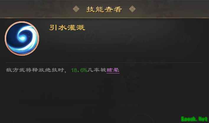 当大乔存活时,若敌方武将释放绝技,有18.6%概率被眩晕,效果随技能等级提升。