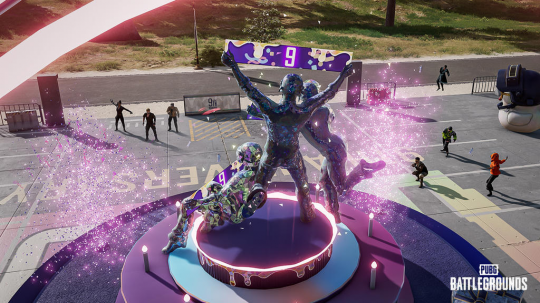 正值上线9周年之际,《PUBG》化身为欢乐海洋。为了让玩家在游戏中感受到快乐的庆典氛围,出生点内添加了9周年纪念雕像。比赛开始前,向雕像投掷全息震爆弹并命中9次,雕像将变换为该玩家的外貌。此外,游戏内还将上演庆祝《PUBG》9周年的无人机灯光秀,进一步烘托出节日气氛。值得一提的是,本次更新首次推出了只需登录游戏即可免费获得的“活动通行证:ALLDAY派对”,通过完成任务,玩家可获得“ALLDAYPROJECT”道具、表情、G-Coin 和 BP 等丰厚奖励。