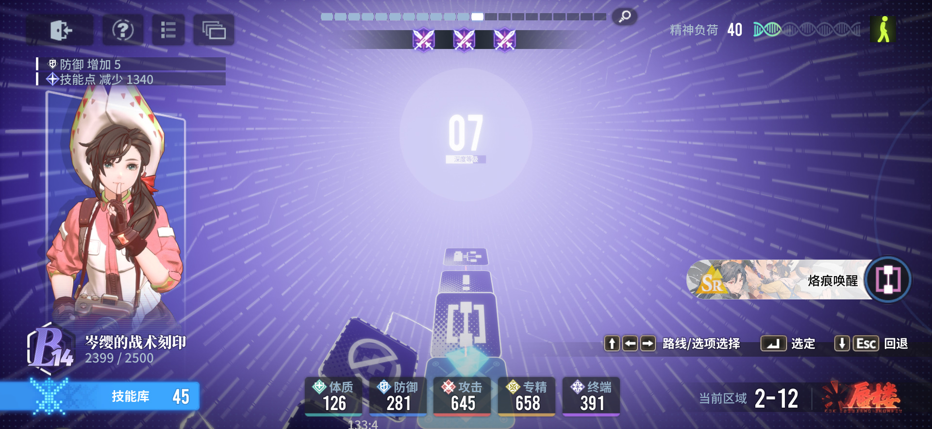 除了《白荆回廊》架构带来的新鲜感,剧情上也有接连不断的惊喜,激发我持续探索的欲望。有别于乙游、开放世界游戏等常见的故事流游戏,《白荆回廊》在主角设定、主线内容方面进行了创新。与常规的单角色养成相比,【回廊漫巡】的培养玩法,带我们带来全新体验。首先,选择一条漫巡线路,再选取角色和提供各种属性技能等加成的【烙痕】,组建我们的小队。开始漫巡后,我们面前会出现许多格子,每个格子都有不同的效果方向,做出选择后能培养不同的能力。相当于提供一个定制化的战力系统。通过改变战力培养方向,我们能发掘游戏内各个体系的可玩性,持续获得新乐趣。