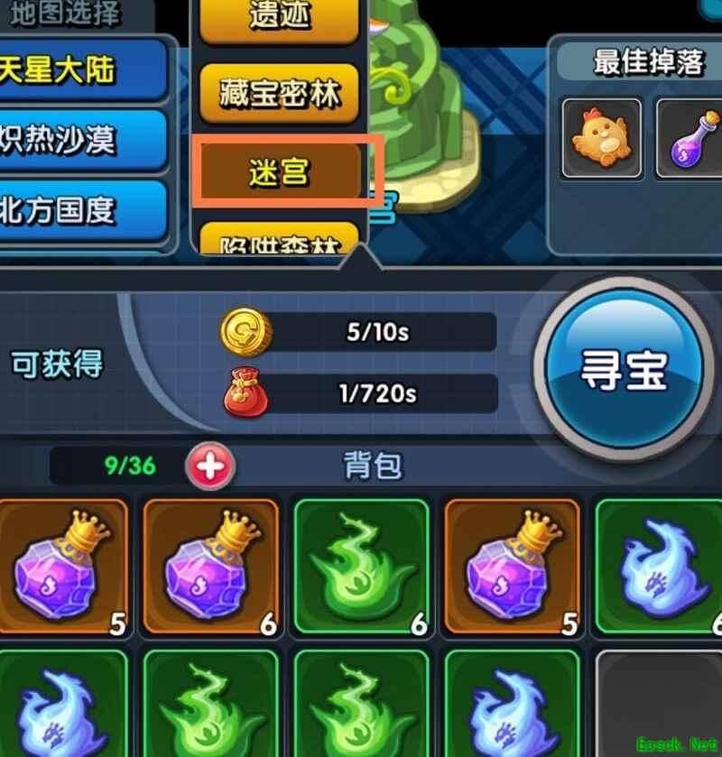 寻宝背包最大容量为36格