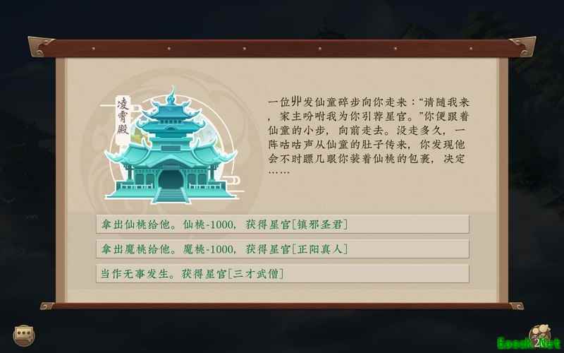 尽早挑战凌霄殿是关键,特别是每周更新前的一两天,此时获取最强星官镇邪圣君的概率较高。务必注意,当仙桃数量不足一千时,切勿贸然进入凌霄殿,以免错失良机。千灵岛与天机楼收益稳定,几乎稳赚不赔;长安城和五行山福利一般,但有机会随机获得太昊天皇、斗战胜佛、草头树神等擅长抢桃的优质星官。游戏前期应优先选择能强化卡组的事件选项,重点获取低费的土木属性生灵以及提升攻击力的装备或法术。待后期资源充裕、卡组成型后,可转向获取增加抢桃次数、桃符、云游机会等增益效果。每日免费云游次数用尽后,可用仙桃继续刷取,因此前期仙桃极为紧缺,使用时需格外谨慎。