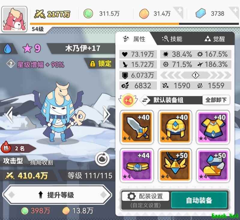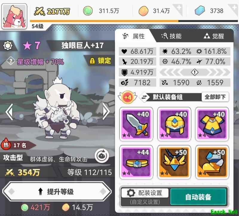光巨人作为主力输出,技能无需全点满,只需将增伤相关的加满即可,能节省两本技能书。装备属性优先选择暴击、暴击伤害、生命值和攻击力。个人认为该使魔升星性价比极高,不仅提升攻击,星级带来的血量增长还能进一步转化为攻击力。目前只等本体到来,来一只可升至八星,来两只就能冲九星,甚至可以考虑吸收暗兔。并非鼓动他人这么做,只是自己实在不想组兔子队,两个兔子所需技能书对微氪玩家而言周期过长,眼下先畅快体验,未来如何谁也说不准。