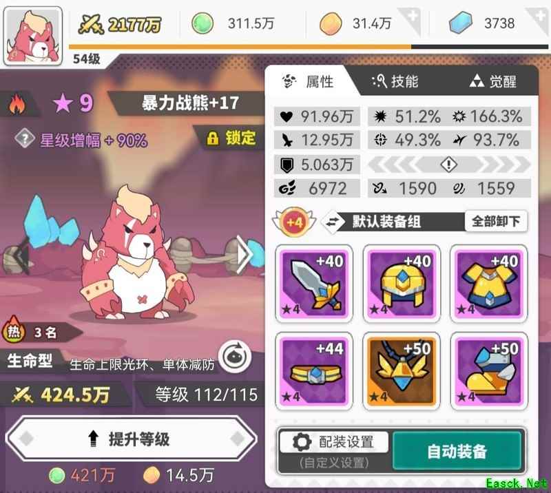 火熊无需多言,主堆血量装备,项链选暴击,副属性可选血量、抗性、攻击或暴击,面对硬仗时往往能有意外表现。