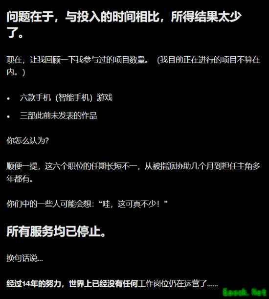 对自由职业者来说,项目被取消带来的最大问题在于:几年的努力可能归零。游戏永远无法面世,也就意味着作品集出现巨大空白,使得他们很难顺利接到下一个项目。