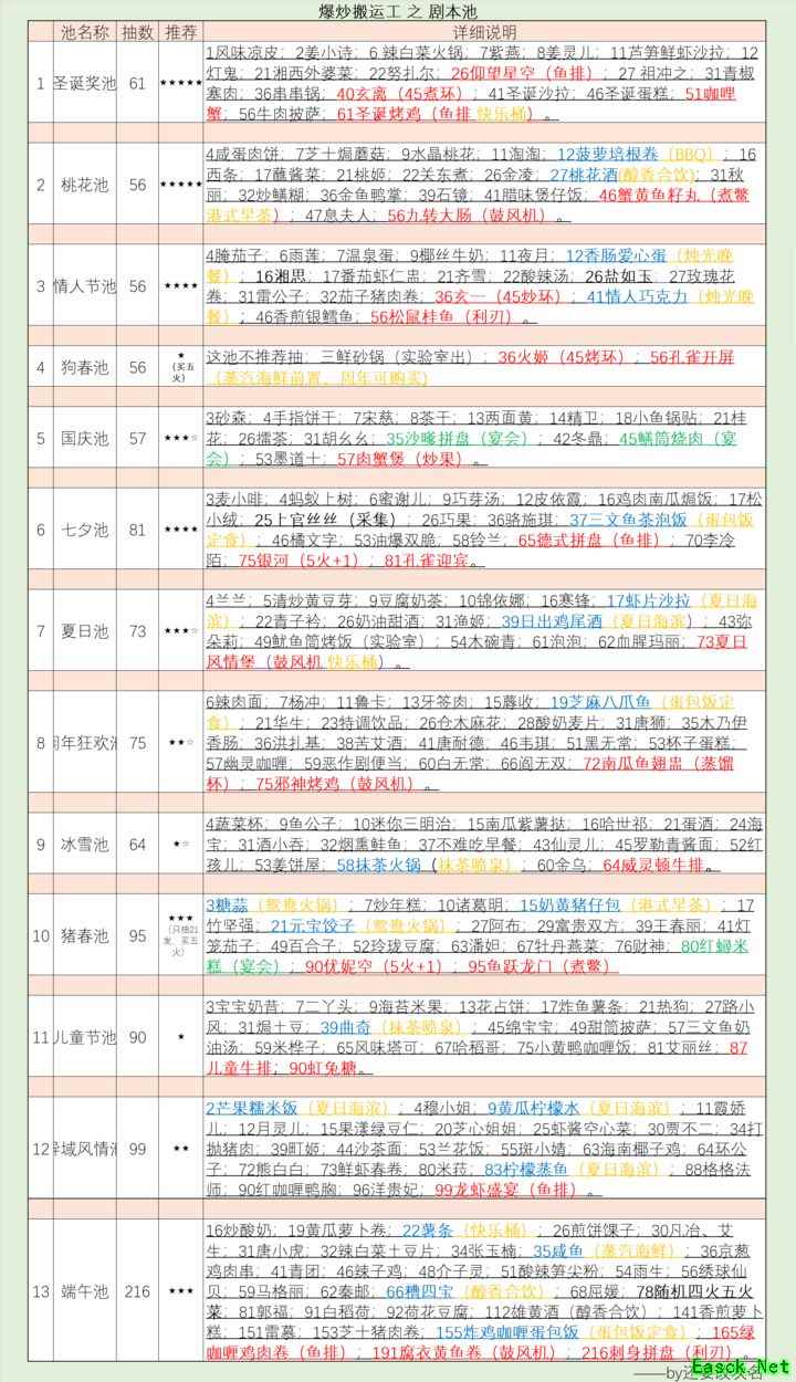 爆炒江湖攻略汇总来啦!本篇文章为你整理了剧本池、后厨菜花费、补池推荐度等实用内容,助你周年庆轻松复刻心仪菜品。感谢群内大佬们的大力支持!