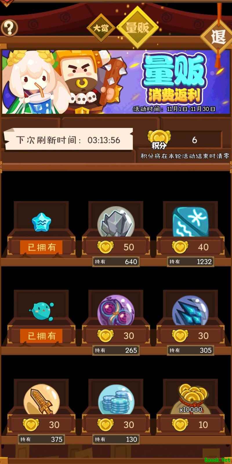 量贩系统会统计玩家当月消耗的玉璧,每花费10点玉璧可获得1积分。目前可用积分兑换除出光天秤外的所有星座以及除雪偶(雪男)外的全部节气角色。新人玩家不建议优先兑换妖怪,因所有妖怪均可通过抽取获得。初期可请高手协助圈定目标怪物,换取所需材料。每日刷新四次,注意技巧叉资源较为紧缺。