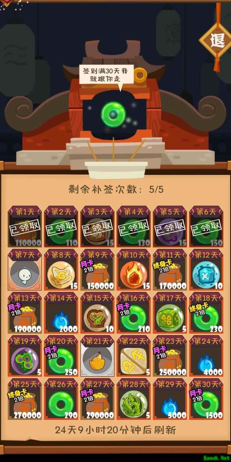 目前采用月度签到制度,签到奖励请自行查看,所有奖励点击签到即可自动领取。翻倍规则详见左上角的翻倍条件。每月可补签五次,具体补签方式若未操作过则不清楚。