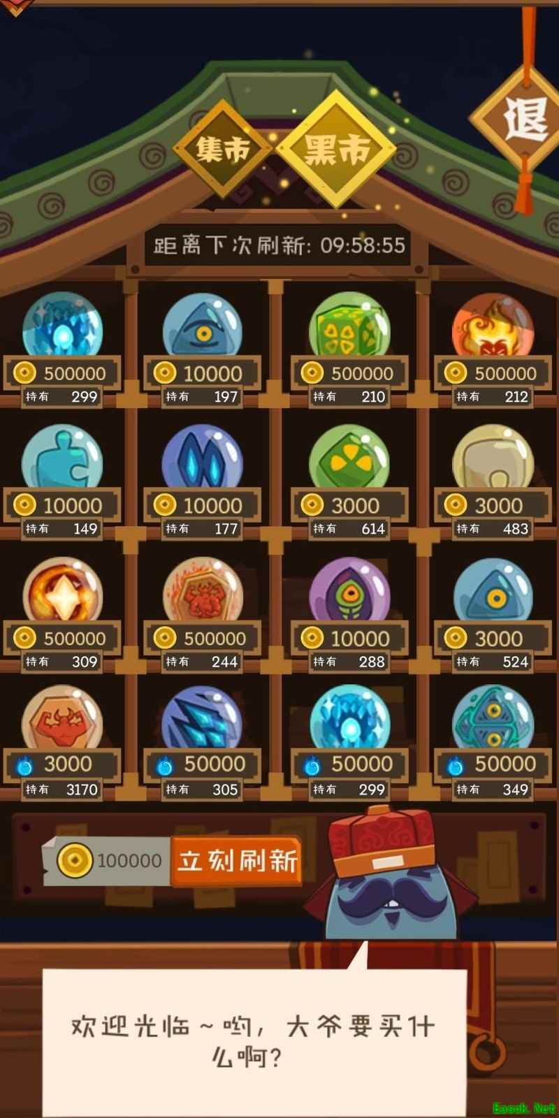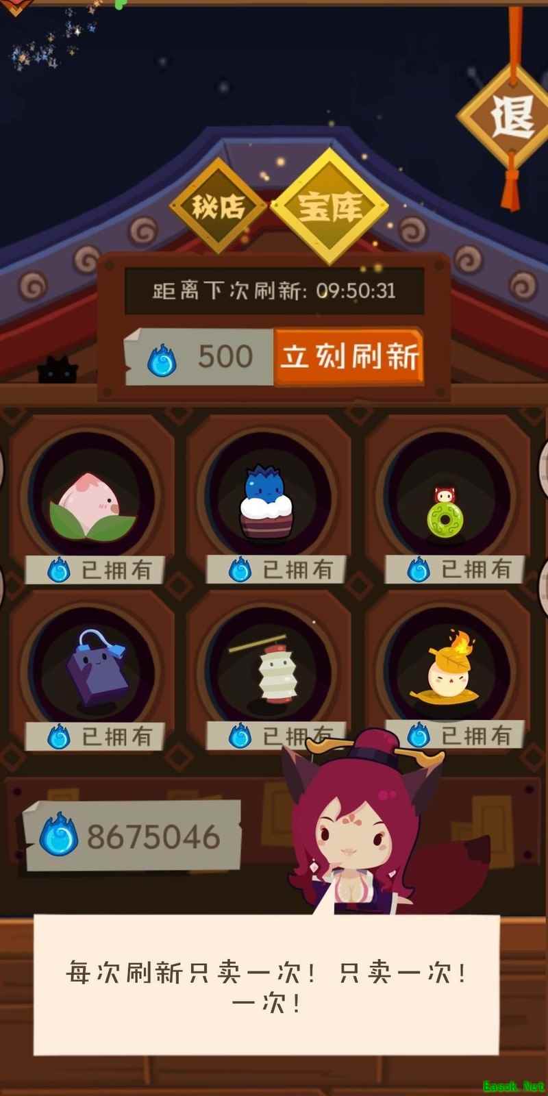 集市提供稳定物资,秘店则源源不断地供应妖怪,以魂为主要交易货币,内设秘店与宝库两个界面。