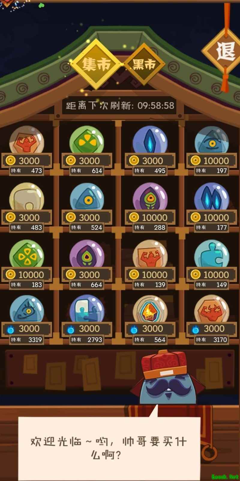 集市设普通市场与黑市两区,交易以金币为主要流通货币。