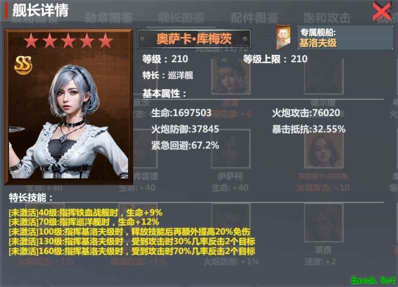 专属舰长为奥萨卡·库梅茨。