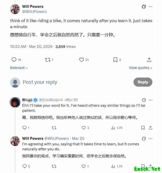 面对玩家的诸多不满,Pearl Abyss的公关及市场总监Will Powers作出了回应。他在X平台回复玩家时,针对玩家提出的 “简化操作游戏就会很完美” 的观点,表示游戏的操作就像骑自行车一样,还强调掌握操作虽然需要花费时间,但只要玩家学会了,后续就能自然而然地熟练运用。当有玩家回复会慢慢尝试适应操作时,Will Powers也认可了掌握操作需要时间这一点,同时再次重申,玩家一旦习得操作技巧,就能轻松上手。