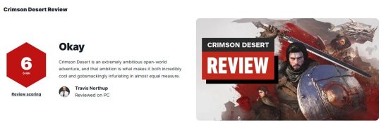 近日外媒IGN为《红色沙漠》打出最终评分,和此前临时评分一样,仍为6分。评测人游玩了130个小时,认为这款游戏战斗乏味,剧情糟糕,Bug太多。