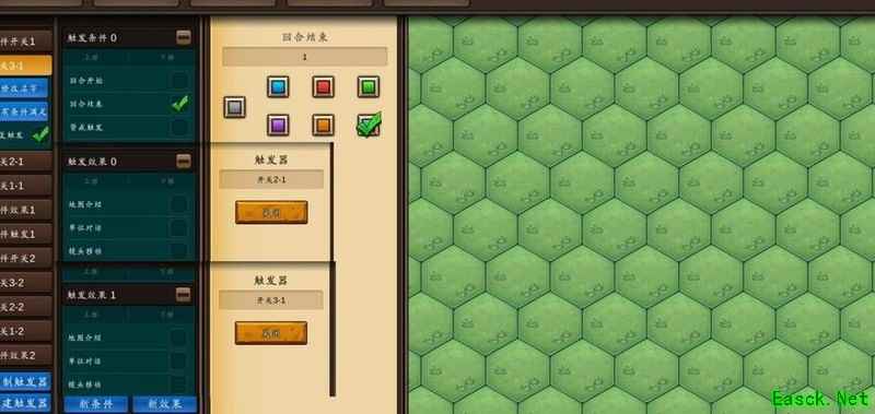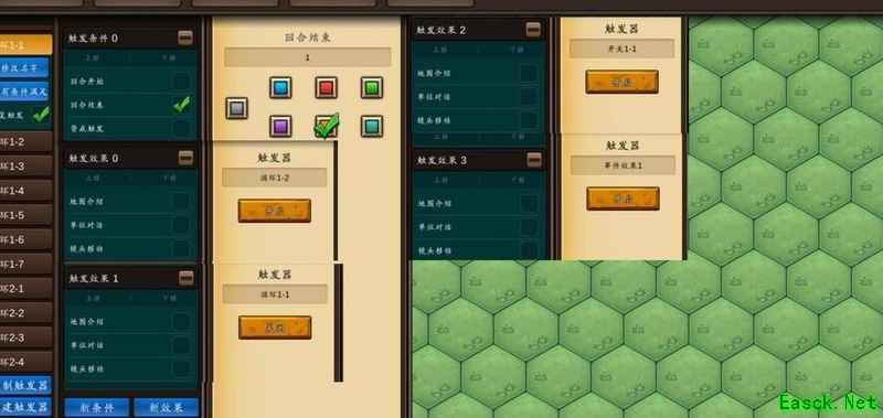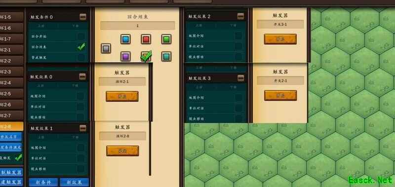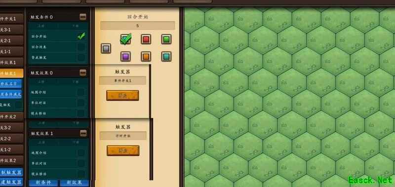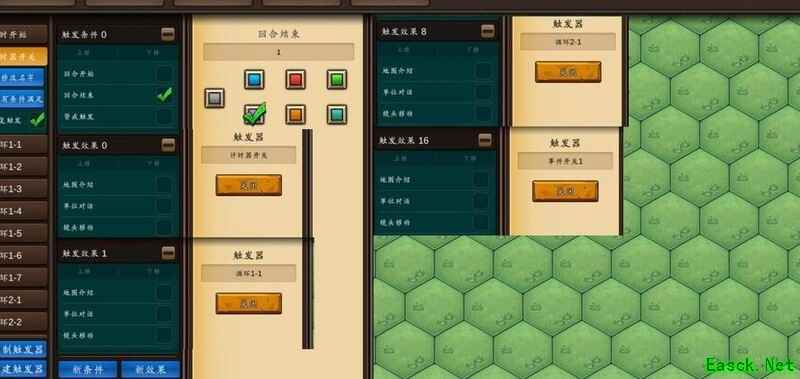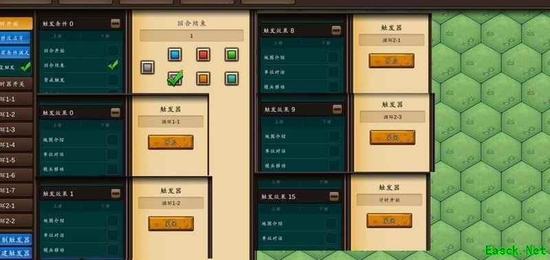 若需新增或修改事件,可复制六个内容相同的触发器,包括事件开关和事件触发等,稍作调整即可。随后在计时器开关中添加关闭对应事件开关的设置,并根据延迟的回合数,在循环器的相应触发器中加入对应效果,最后完成事件触发机制与具体效果的整体设计。
