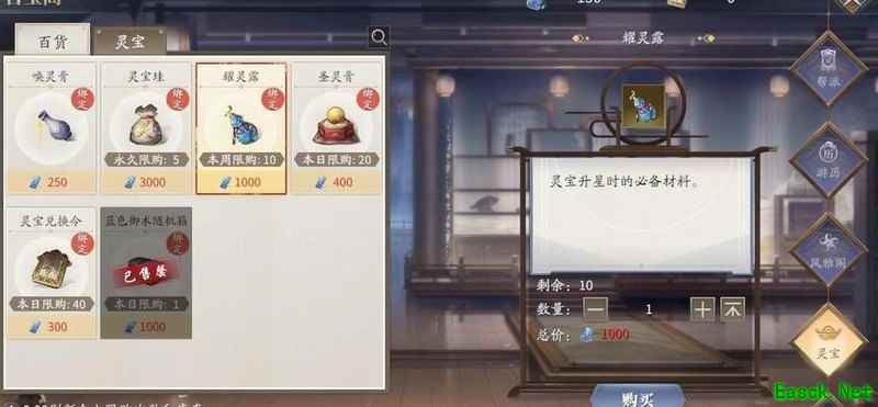 每日剩余灵宝可兑换令,建议购买用于蜕灵提升品质,运气佳时更有机会获得移灵效果。