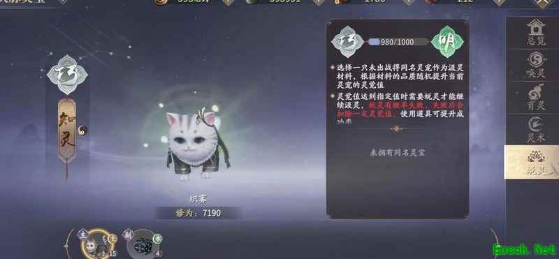 展示一张图作为示范,我率先突破育灵等级,之后仅用一枚唤灵膏便完成晋升。