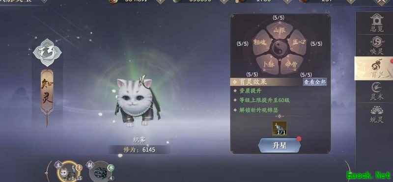 宠物通过升级达到指定等级后可进行升星,升星需消耗耀灵露。共有五个位置可供培养,升星后可根据情况决定继续培养当前宠物或转向其他宠物。